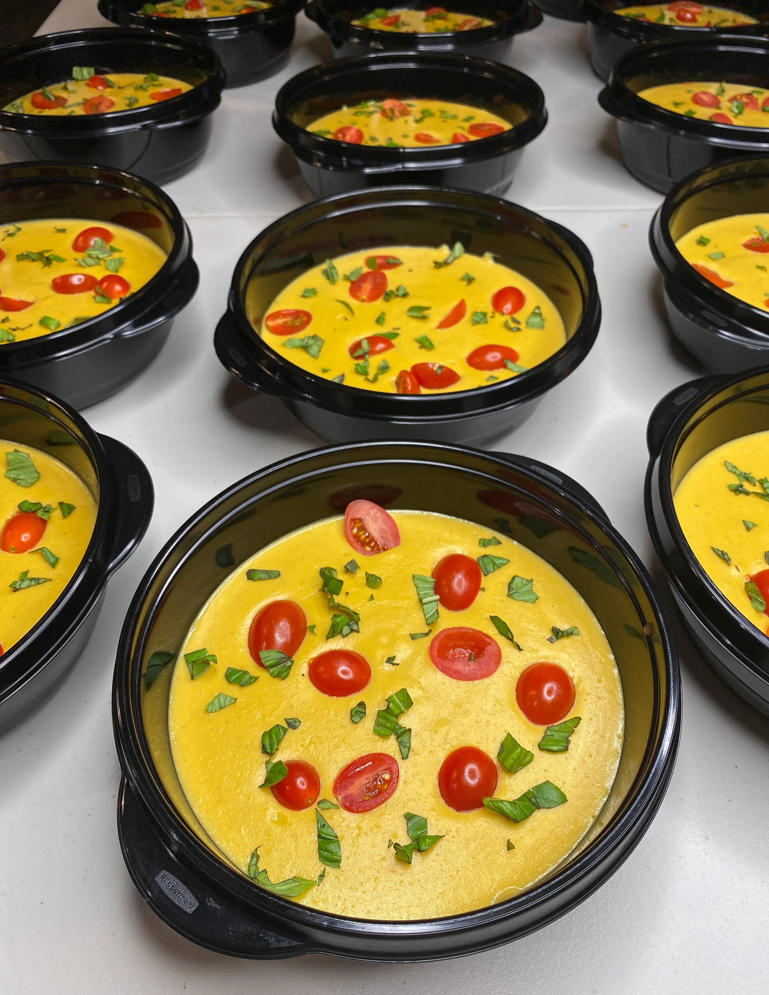 A sweet & savory stew of organic chickpeas, local kabocha squash, tomatoes, vegetable broth, golden raisins, onion, garlic and spices. Served with millet, roasted cauliflower and spiced yogurt sauce.